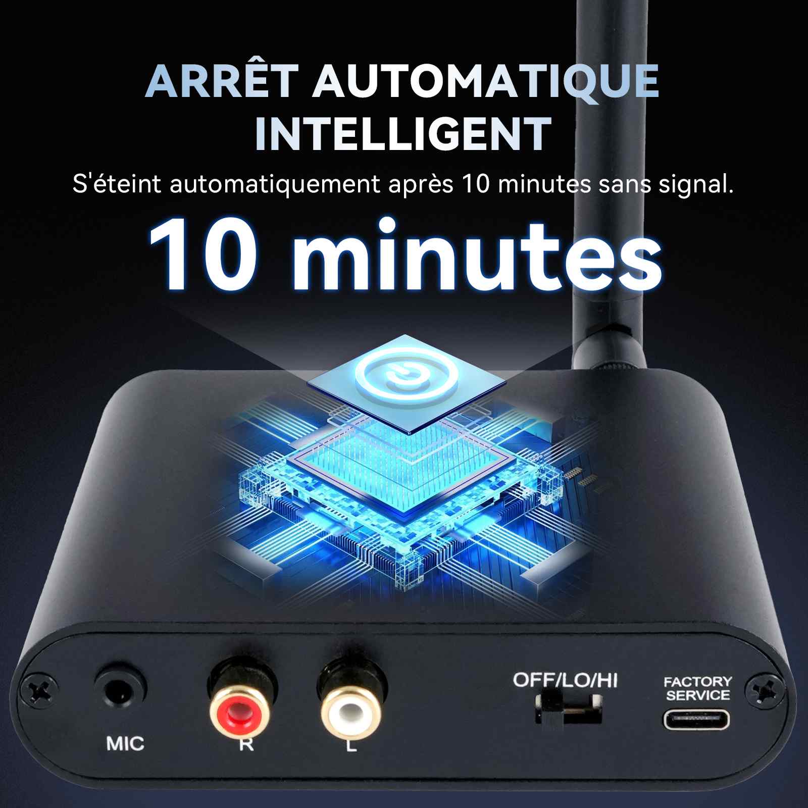 | Délai d'arrêt en l'absence de signal : 10 minutes |
