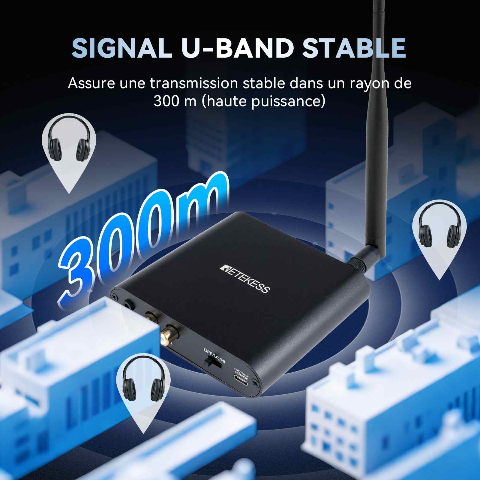 | Réponse en fréquence du récepteur : 60-15 000 Hz |