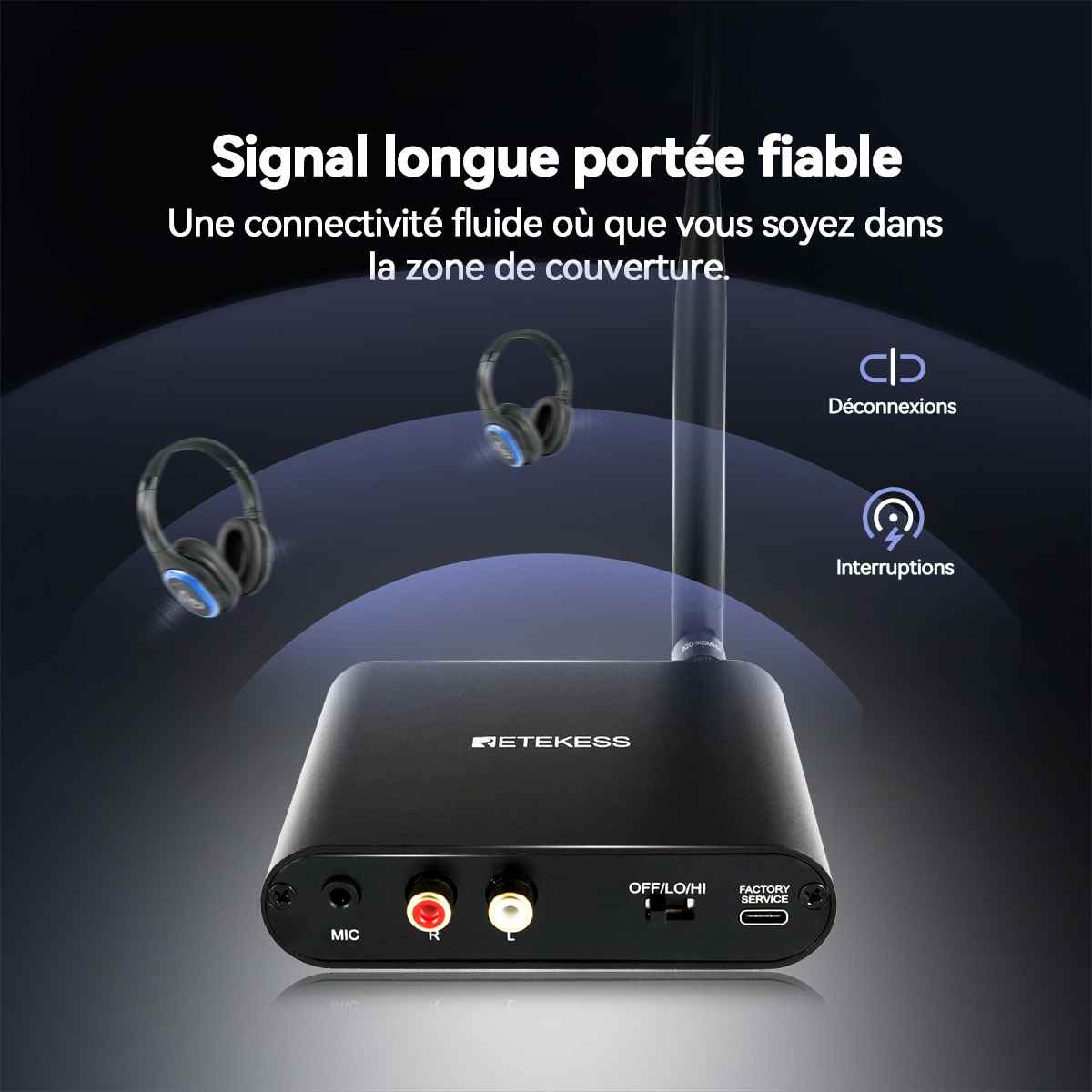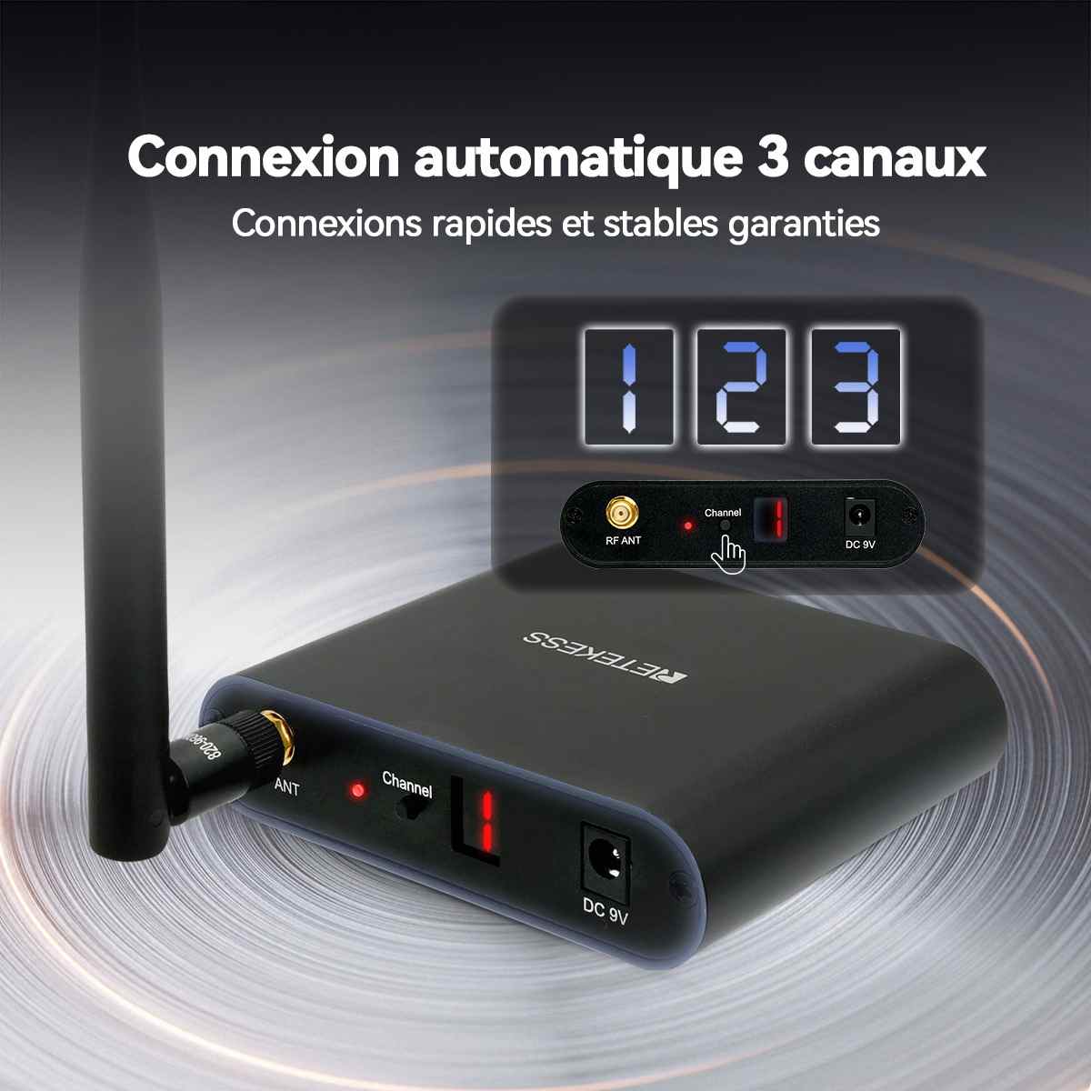 Changement rapide de canal pour éviter les interférences et garantir une transmission audio stable.