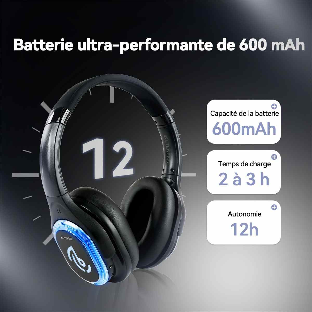 | Alimentation des écouteurs : 600 mAh |