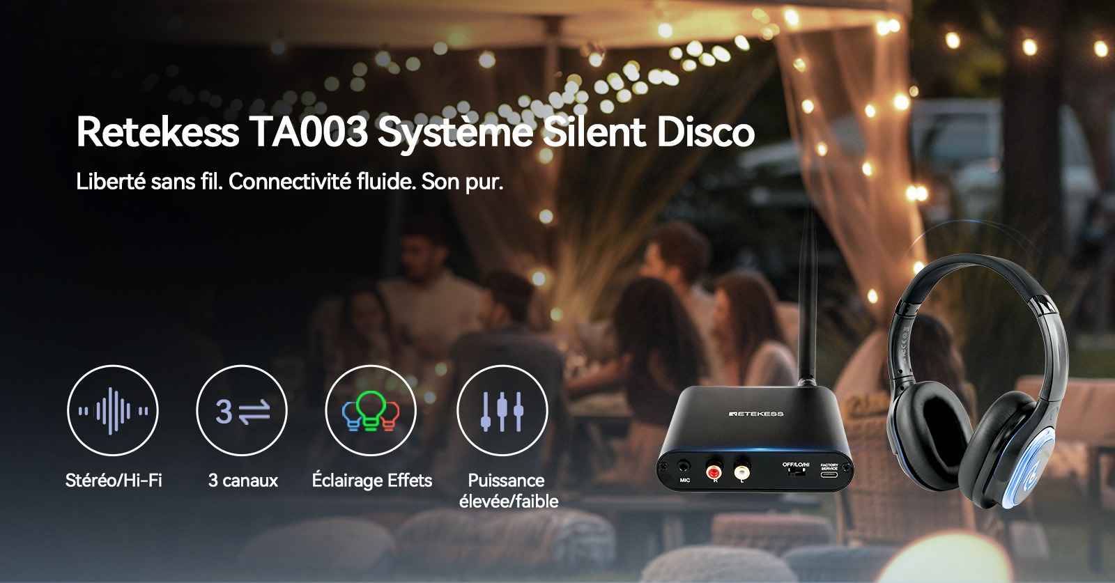 Silent Disco, ou « fête dansante silencieuse », est une expérience de fête unique qui s’affranchit généralement des équipements sonores traditionnels. La musique est diffusée via des casques audio sans fil (comme les casques Silent Disco TA003 et TA004), permettant aux participants d’en profiter pleinement sans déranger leur entourage. Créez une fête de carnaval festive et civilisée !