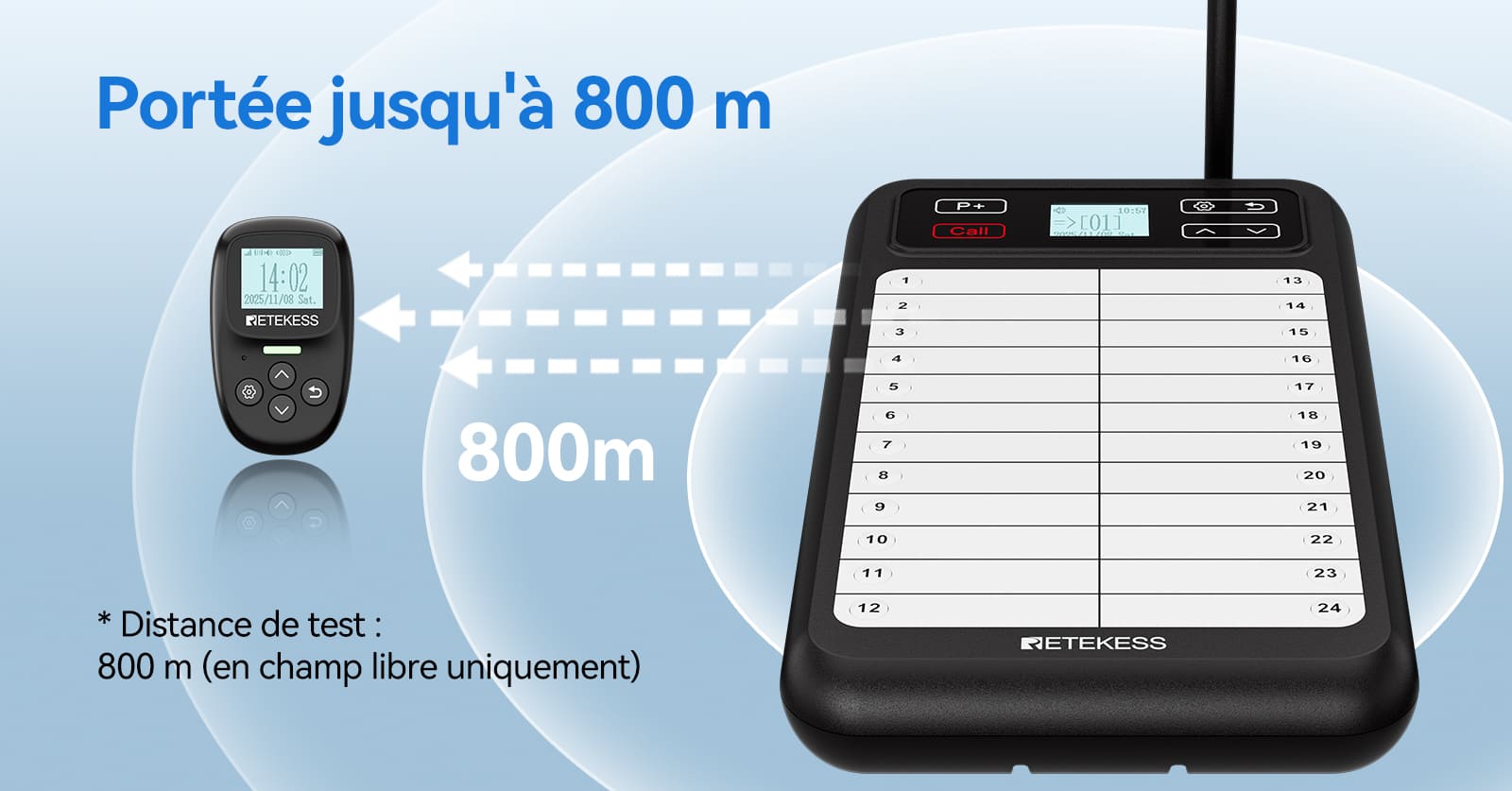 Ce système de radiomessagerie pour serveurs offre une large portée ; sa portée de communication dépasse 800 mètres, ce qui le rend idéal pour les grands établissements et les environnements à forte activité