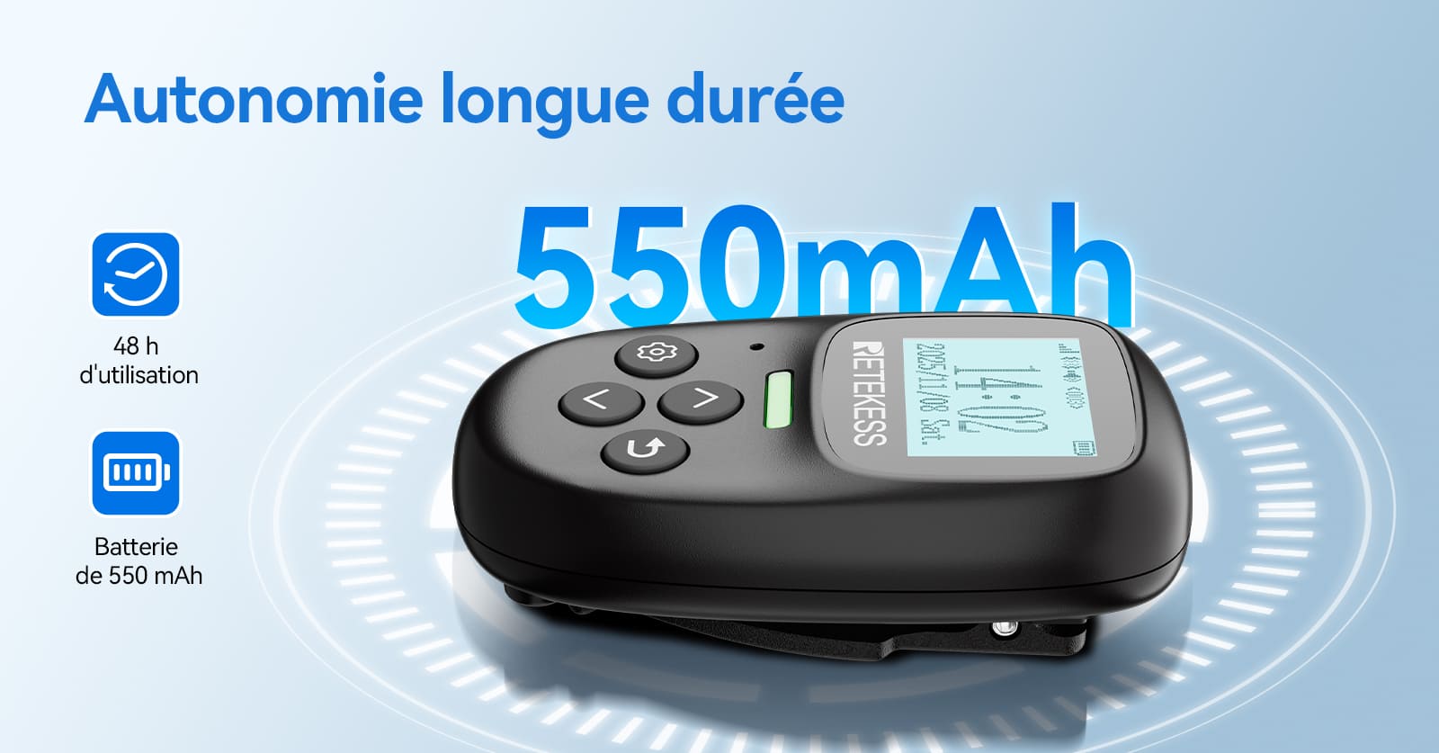 Le récepteur de ce système de radiomessagerie est équipé d'une batterie de 550 mAh, offrant jusqu'à 48 heures d'autonomie, vous assurant un fonctionnement continu même pendant les périodes de forte affluence