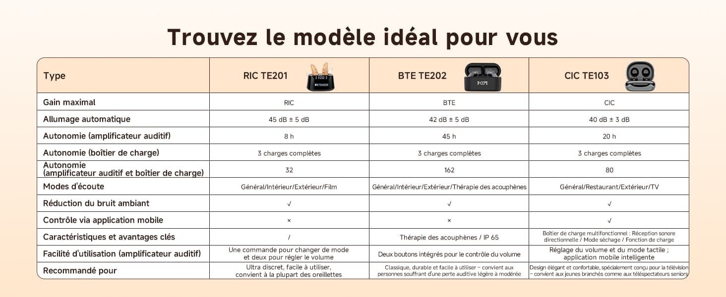 Fonctionnement et utilisation de l'appareil auditif rechargeable TE103