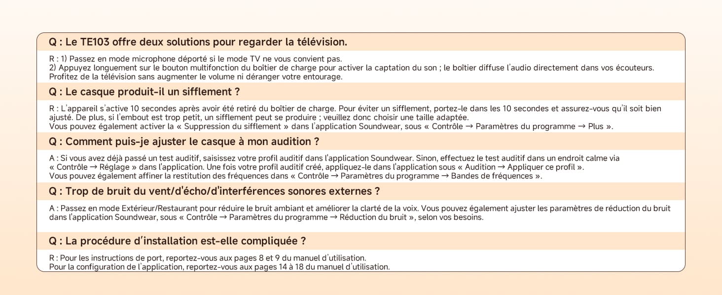 FAQ sur l'appareil auditif TE103 CIC