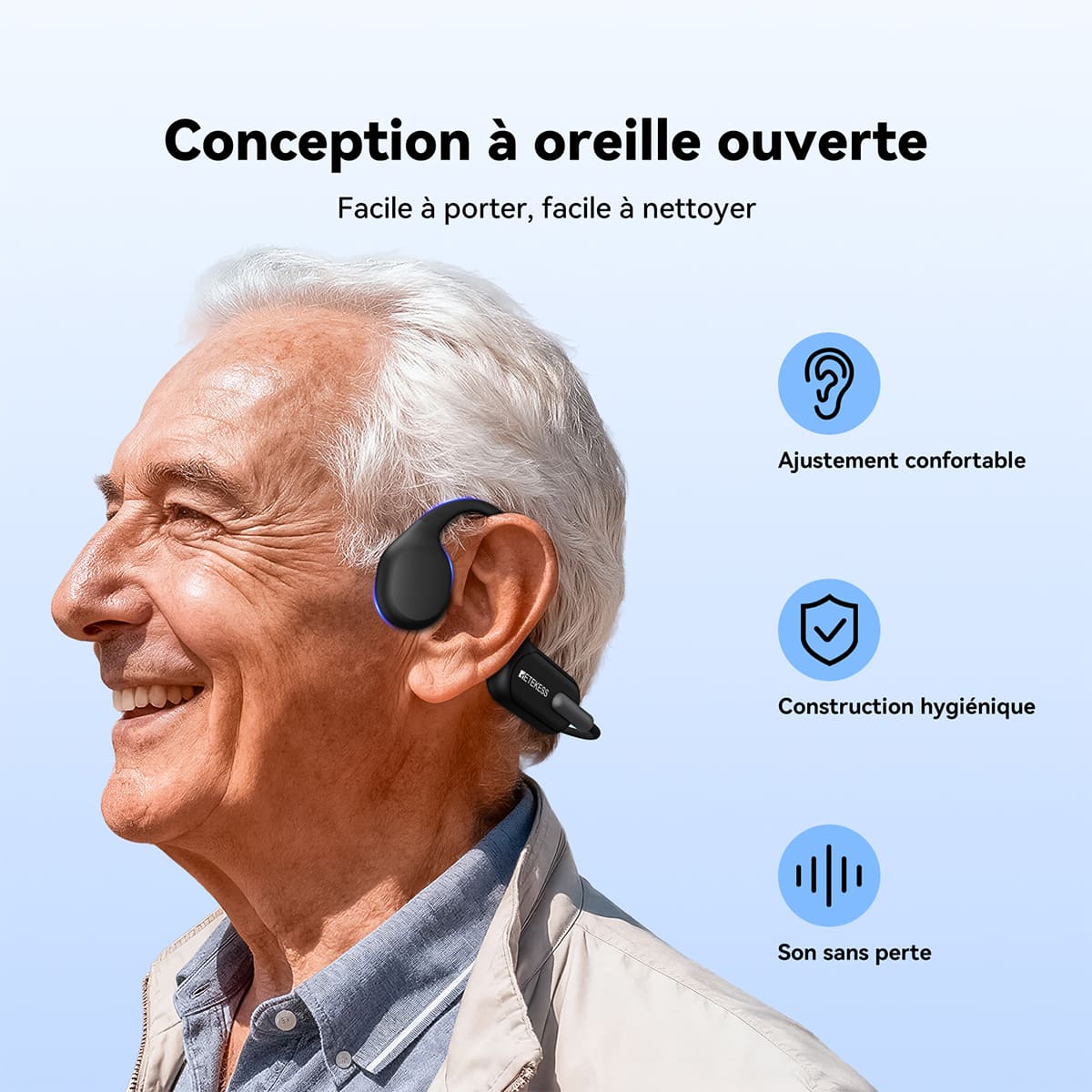 La conception non intra-auriculaire garantit confort et hygiène. Il permet un port confortable sans insertion dans le conduit auditif, éliminant ainsi le besoin de nettoyage quotidien des bouchons d'oreille et facilitant leur entretien.